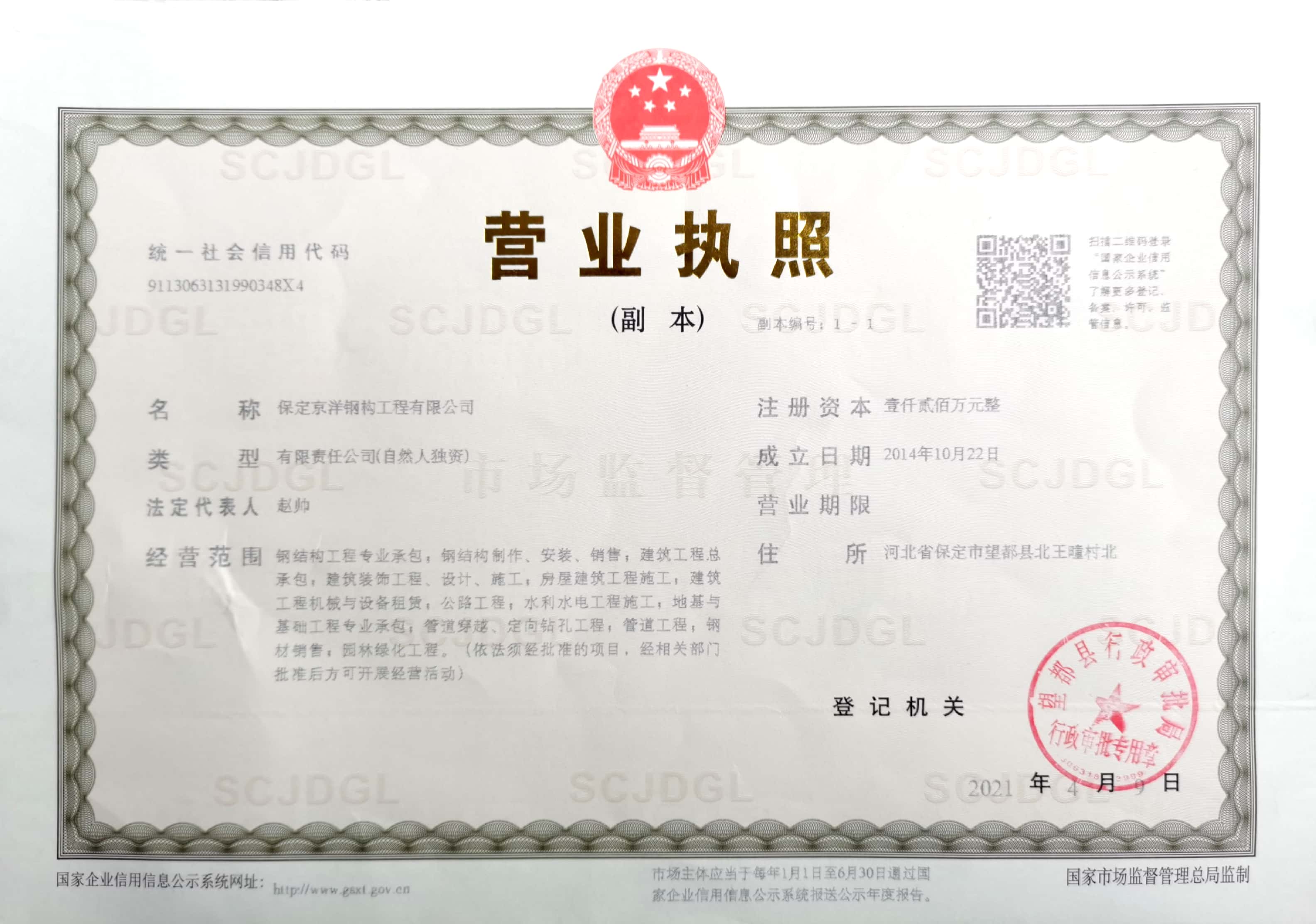 保定京洋鋼構工程有限公司位于千年古縣望都。望都縣處于京津冀核心區(qū),是對接京津的交通要塞。距北京180公里,天津170公里,石家莊機場70公里。京石高鐵、京廣鐵路、京港澳高速、107國道四條交通大動脈縱貫全縣。圍繞望都南北各一座高鐵站,定州站(30公里)和保定站(35公里)。京昆高速、保阜高速均有連接線,四條省級公路縱橫交錯,交通便捷。