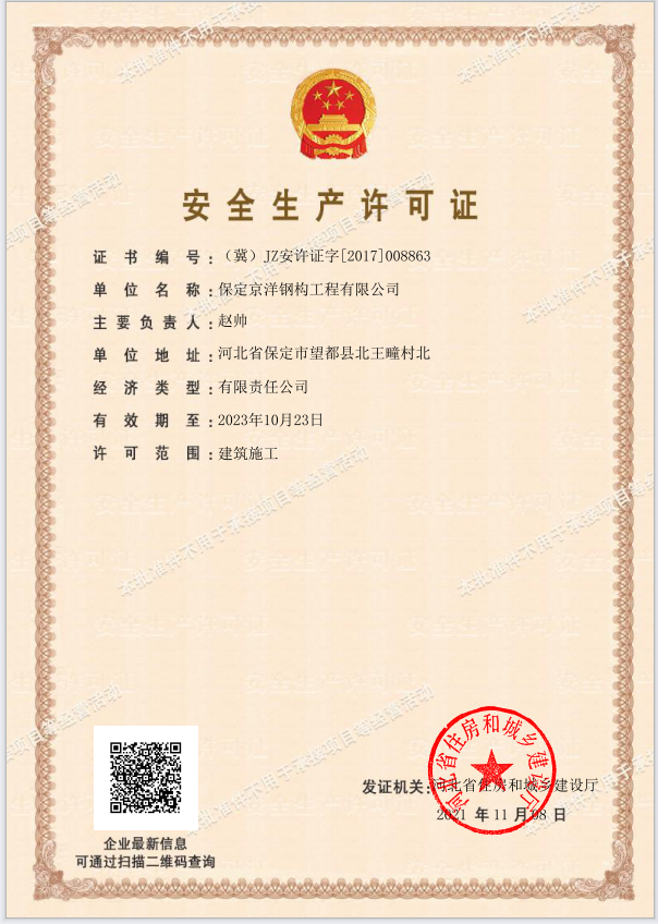 公司主要致力于鋼結構設計、制作、安裝、銷售為一體的鋼結構施工專業(yè)企業(yè)。成立于2010年,注冊資金1200萬元。公司擁有國內(nèi)先進的數(shù)控自動焊接設備、H鋼結構生產(chǎn)線、CZ鋼快速切換一體機、自動剪切壓板機等,優(yōu)良的制作加工車間及檢測設備。公司秉承“質(zhì)量求生存,管理出效益”發(fā)展理念,組建了一支高素質(zhì)、高水平的團隊以及責任明確、職責清楚、獎罰分明的管理體系。